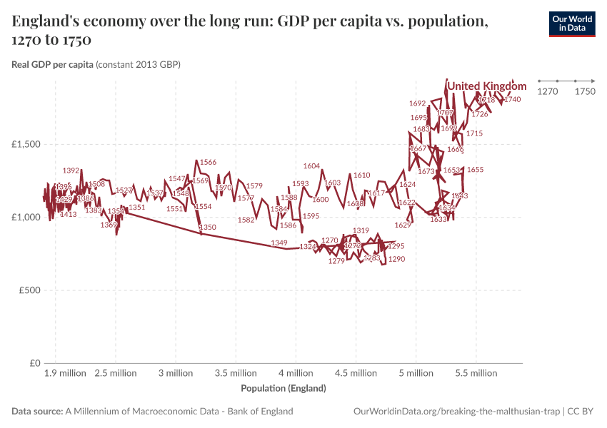 Max Roser (2020) - “Breaking out of the Malthusian trap: How pandemics allow us to understand why our ancestors were stuck in poverty” Published online at OurWorldinData.org. Retrieved from: 'https://admin-refresh-dis.owid.pages.dev/breaking-the-malthusian-trap' [Online Resource]BibTeX citation