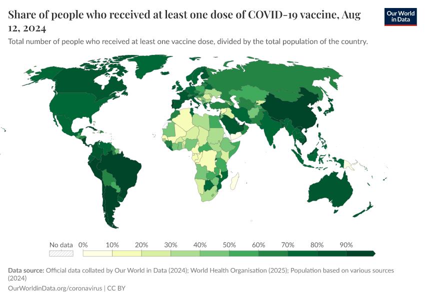 Edouard Mathieu, Hannah Ritchie, Lucas Rodés-Guirao, Cameron Appel, Daniel Gavrilov, Charlie Giattino, Joe Hasell, Bobbie Macdonald, Saloni Dattani, Diana Beltekian, Esteban Ortiz-Ospina, and Max Roser (2020) - “Coronavirus (COVID-19) Vaccinations” Published online at OurWorldinData.org. Retrieved from: 'https://admin-refresh-dis.owid.pages.dev/covid-vaccinations' [Online Resource]BibTeX citation