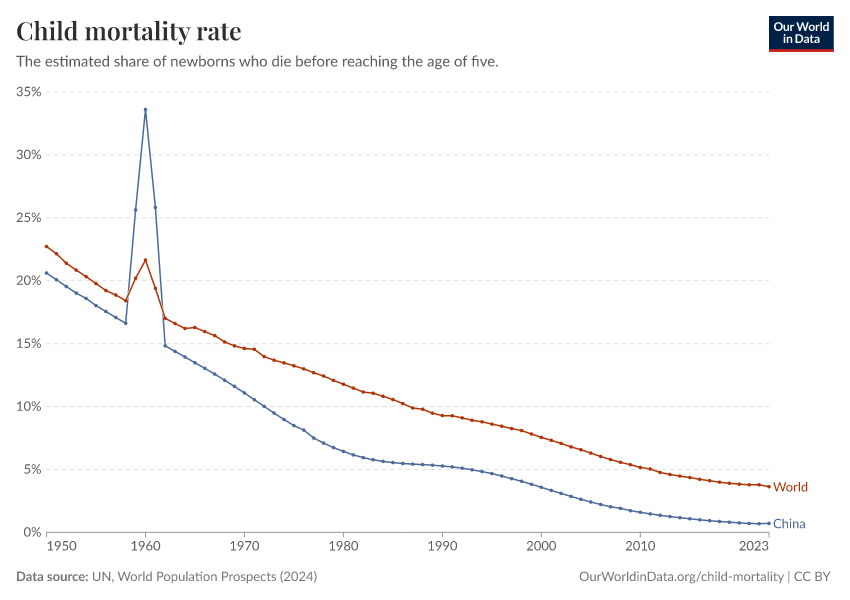 “Data Page: Child mortality rate, ages 0-4”. Our World in Data (2026). Data adapted from United Nations. Retrieved from https://admin-refresh-dis.owid.pages.dev/grapher/child-mortality-around-the-world [online resource]How to cite this data