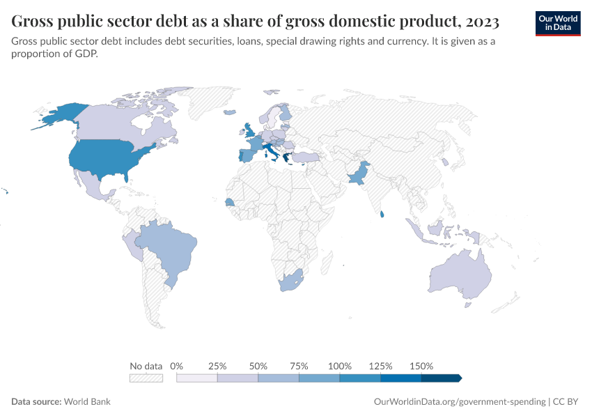 “Data Page: Gross public sector debt as a share of gross domestic product”. Our World in Data (2026). Data adapted from World Bank. Retrieved from https://admin-refresh-dis.owid.pages.dev/grapher/gross-public-sector-debt-as-a-proportion-of-gdp [online resource]How to cite this data