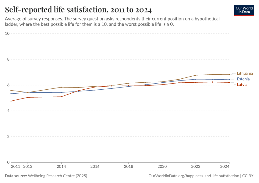 Wellbeing Research Centre (2025) – with major processing by Our World in Data. “Self-reported life satisfaction” [dataset]. Wellbeing Research Centre, “World Happiness Report 2025” [original data]. Retrieved March 13, 2026 from https://admin-refresh-dis.owid.pages.dev/grapher/happiness-cantril-ladder