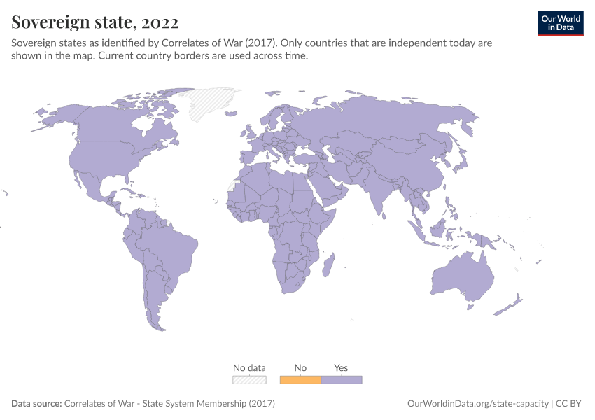 “Data Page: Sovereign state”, part of the following publication: Bastian Herre and Pablo Arriagada (2023) - “State Capacity”. Data adapted from Correlates of War. Retrieved from https://admin-refresh-dis.owid.pages.dev/grapher/sovereign-state-cow [online resource]How to cite this data
