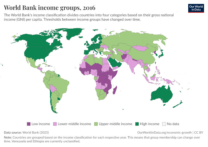 World Bank (2025) – with major processing by Our World in Data. “World Bank income groups” [dataset]. World Bank, “Income Classifications” [original data]. Retrieved March 13, 2026 from https://admin-refresh-dis.owid.pages.dev/grapher/world-bank-income-groups
