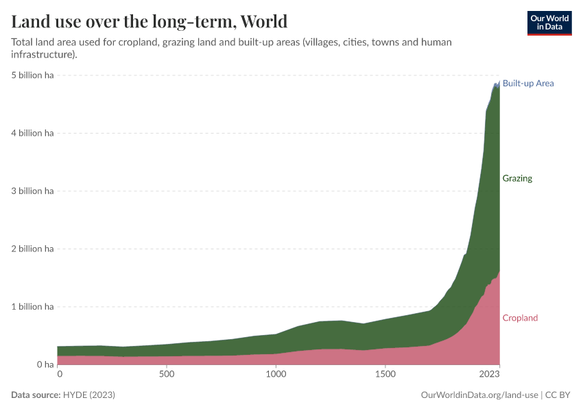 Hannah Ritchie and Max Roser (2019) - “Land Use” Published online at OurWorldinData.org. Retrieved from: 'https://admin-refresh-dis.owid.pages.dev/land-use' [Online Resource]BibTeX citation