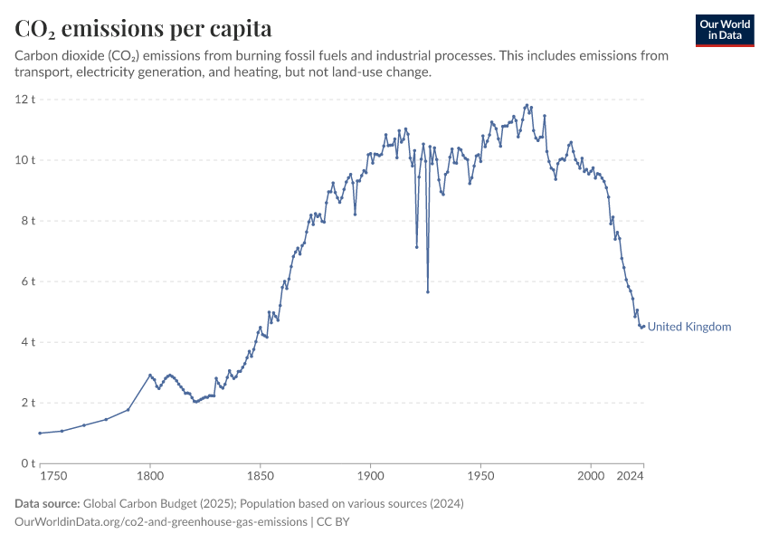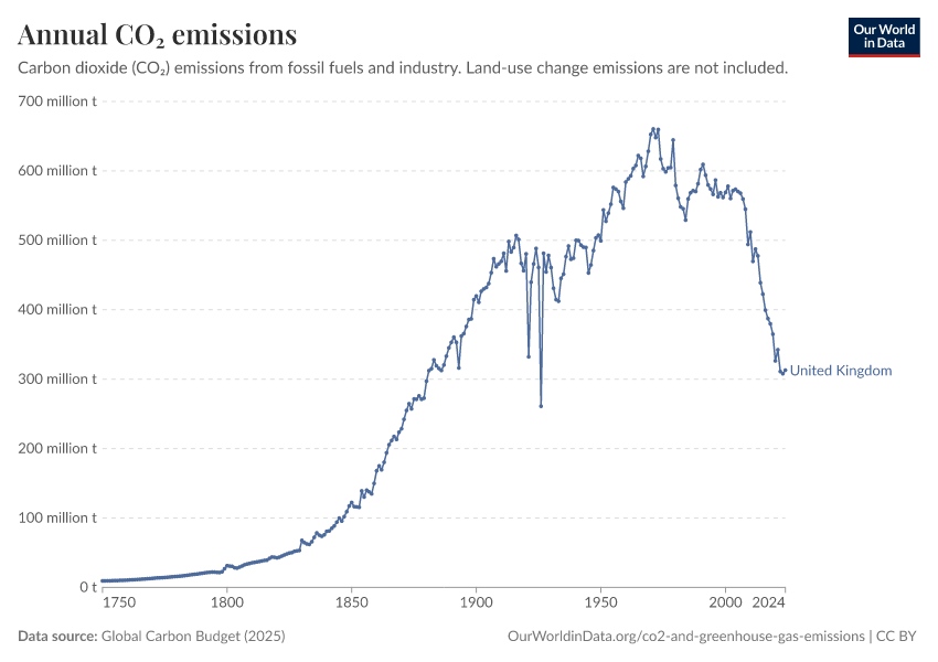 Hannah Ritchie and Pablo Rosado (2025) - “CO₂ and Greenhouse Gas Emissions” Published online at OurWorldinData.org. Retrieved from: 'https://admin-refresh-dis.owid.pages.dev/profile/co2/united-kingdom' [Online Resource]BibTeX citation