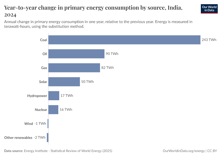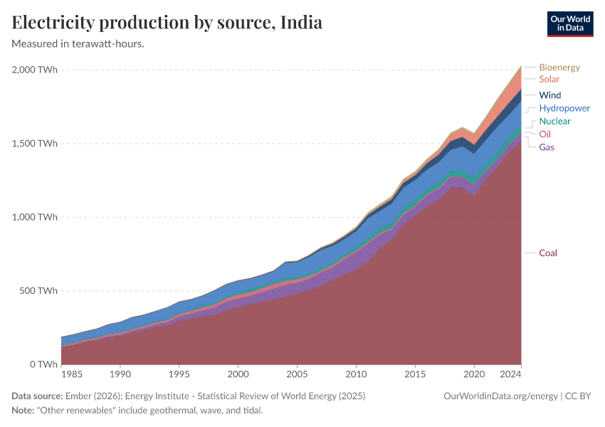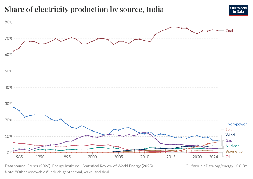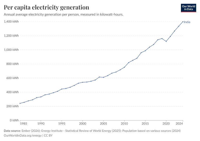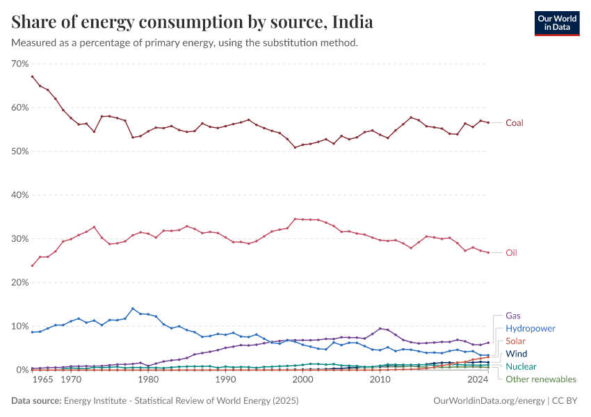 Hannah Ritchie and Pablo Rosado (2025) - “Energy” Published online at OurWorldinData.org. Retrieved from: 'https://admin-refresh-dis.owid.pages.dev/profile/energy/india' [Online Resource]BibTeX citation
