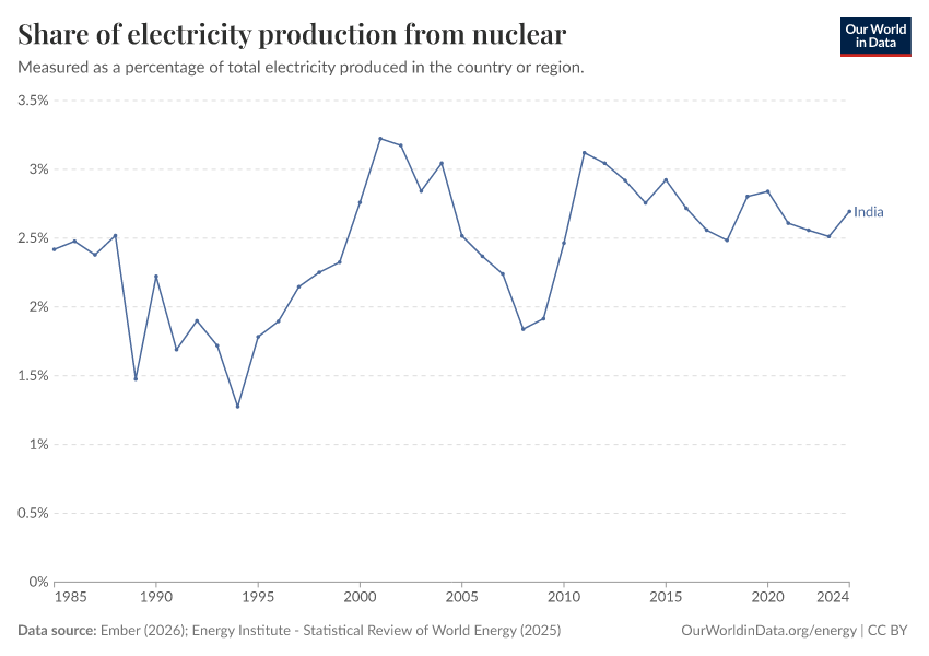 How much of India’s energy comes from nuclear power?