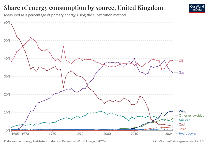 Hannah Ritchie and Pablo Rosado (2025) - “Energy” Published online at OurWorldinData.org. Retrieved from: 'https://admin-refresh-dis.owid.pages.dev/profile/energy/united-kingdom' [Online Resource]BibTeX citation
