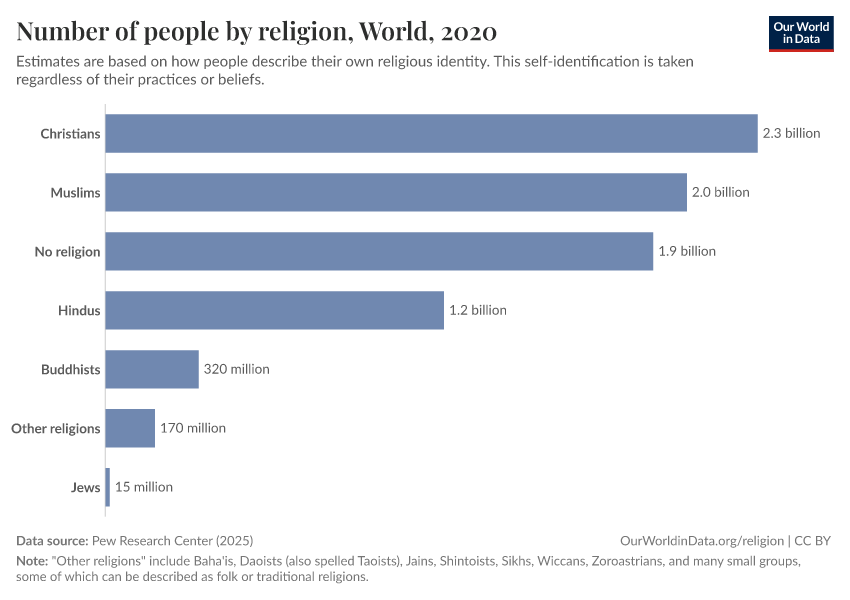 Hannah Ritchie, Lucas Rodés-Guirao, Pablo Arriagada, and Esteban Ortiz-Ospina (2026) - “Religion” Published online at OurWorldinData.org. Retrieved from: 'https://admin-refresh-dis.owid.pages.dev/religion' [Online Resource]BibTeX citation