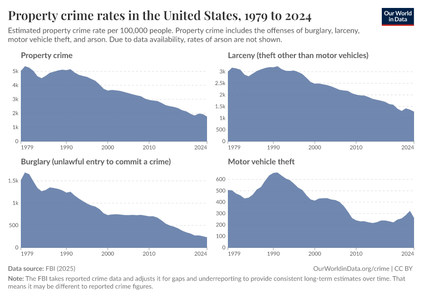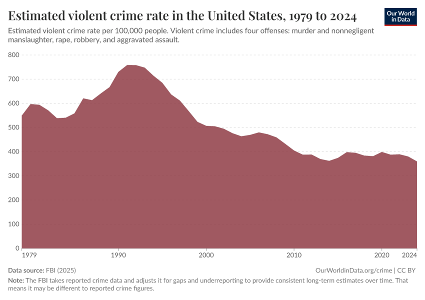 Hannah Ritchie and Fiona Spooner (2026) - “How have crime rates in the United States changed over the last 50 years?” Published online at OurWorldinData.org. Retrieved from: 'https://admin-refresh-dis.owid.pages.dev/us-crime-rates' [Online Resource]BibTeX citation