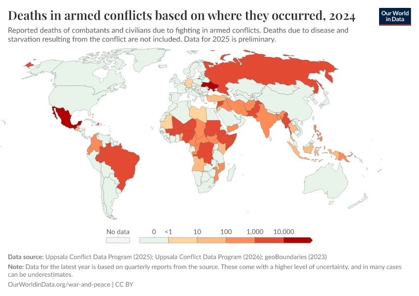 Bastian Herre, Lucas Rodés-Guirao, and Max Roser (2024) - “War and Peace” Published online at OurWorldinData.org. Retrieved from: 'https://admin-refresh-dis.owid.pages.dev/war-and-peace' [Online Resource]BibTeX citation